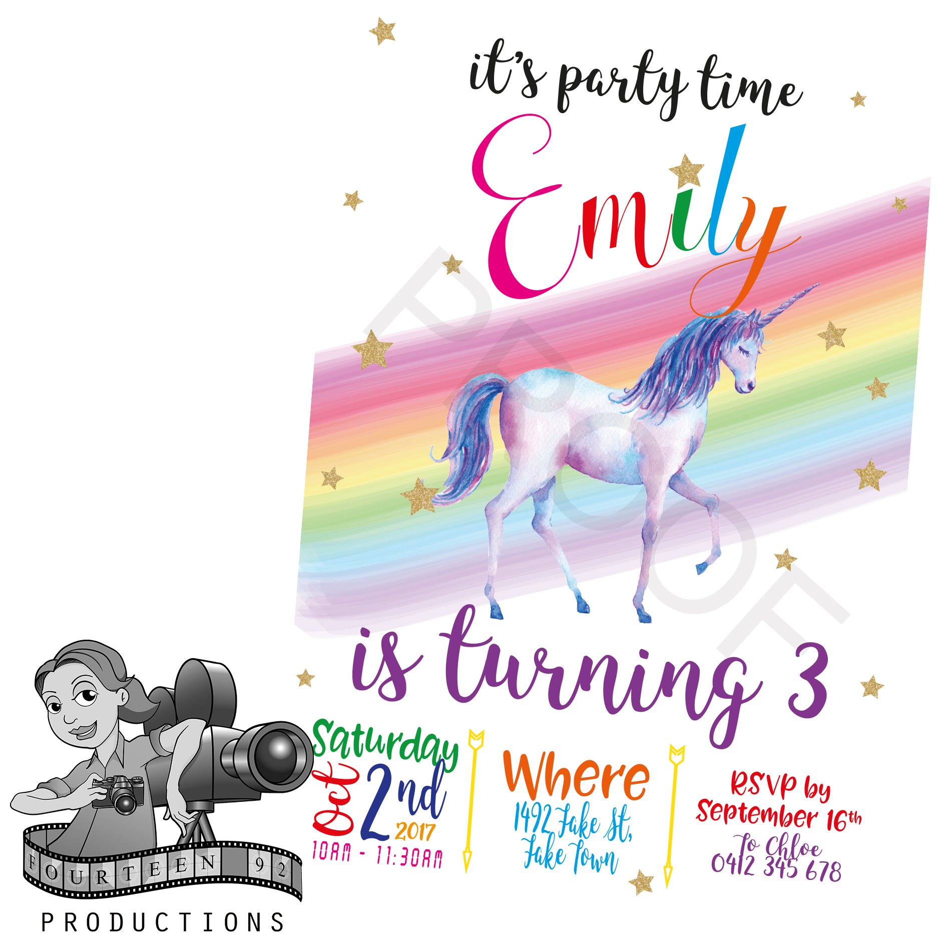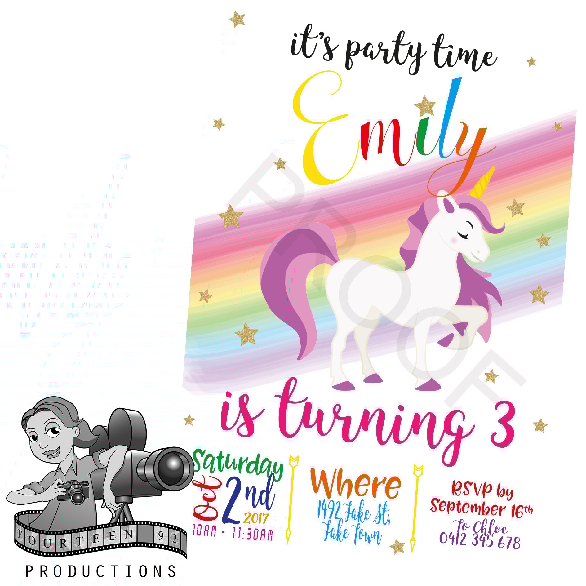 Current turnaround time is 3 business days once payment & all party/event details have been received & your design proofs approved